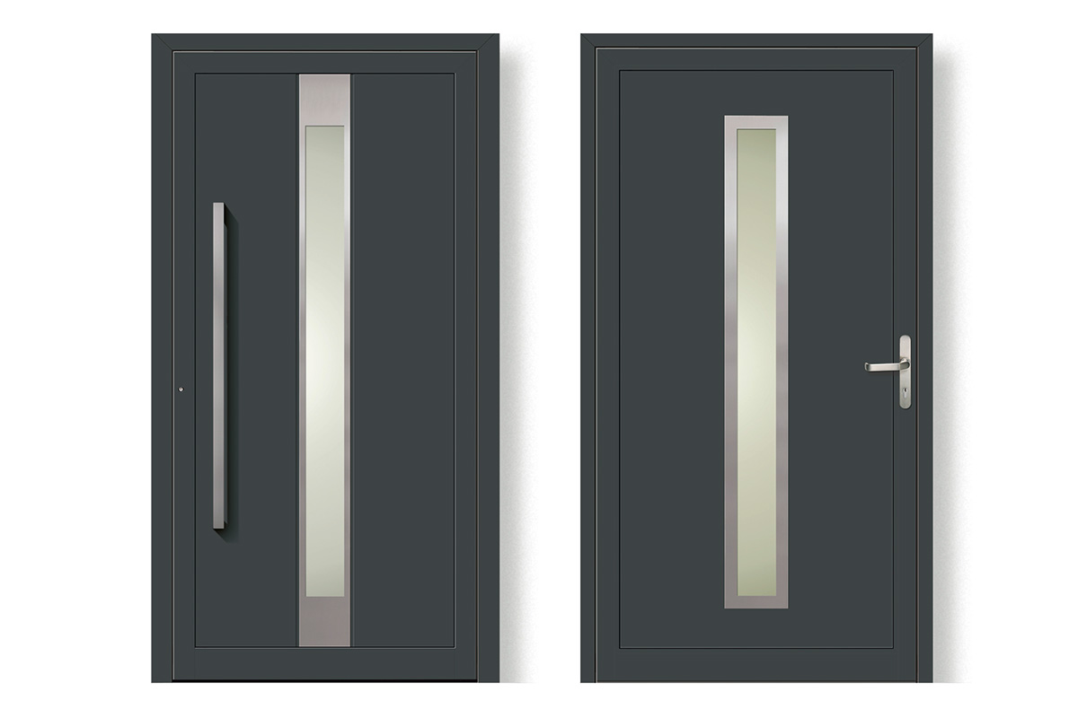 Die Türfüllung wird in den Flügelrahmen eingesetzt. Die Füllung ist beidseitig sichtbar vom Flügelprofil umschlossen. Edle Oberflächen unterstützen die Linienführung.