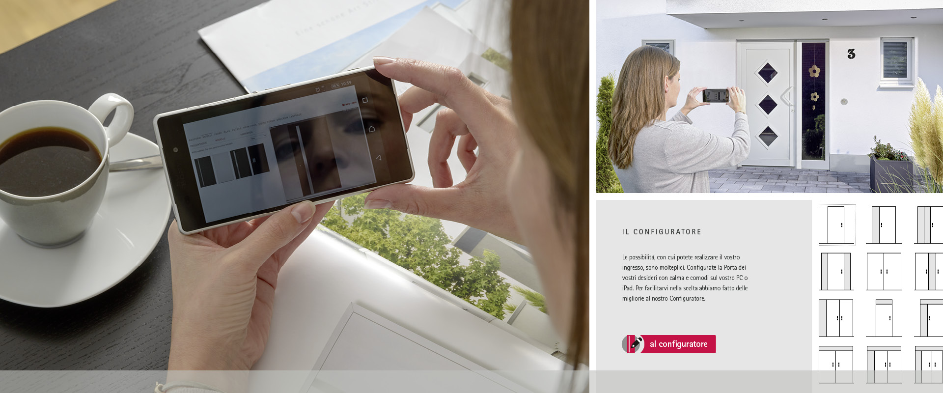 Visitate ora il nostro configuratore di porte d‘ingresso e scoprite i nuovi highlight! Le superfici di design appena introdotte in look corten e cemento sono ora disponibili per la selezione. Lasciatevi ispirare dalla nuova categoria "Design Highlights", che mostra selezionati varianti di modelli. La vetrata decorativa di tendenza "Zoe" è ora disponibile anche per il modello "Consis Export". I sommari dal design vivace rendono la configurazione un'esperienza. Create adesso la porta d‘ingresso dei vostri sogni: Configuratore di porte d'ingresso