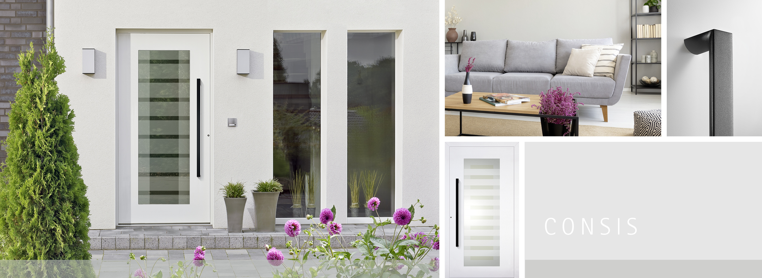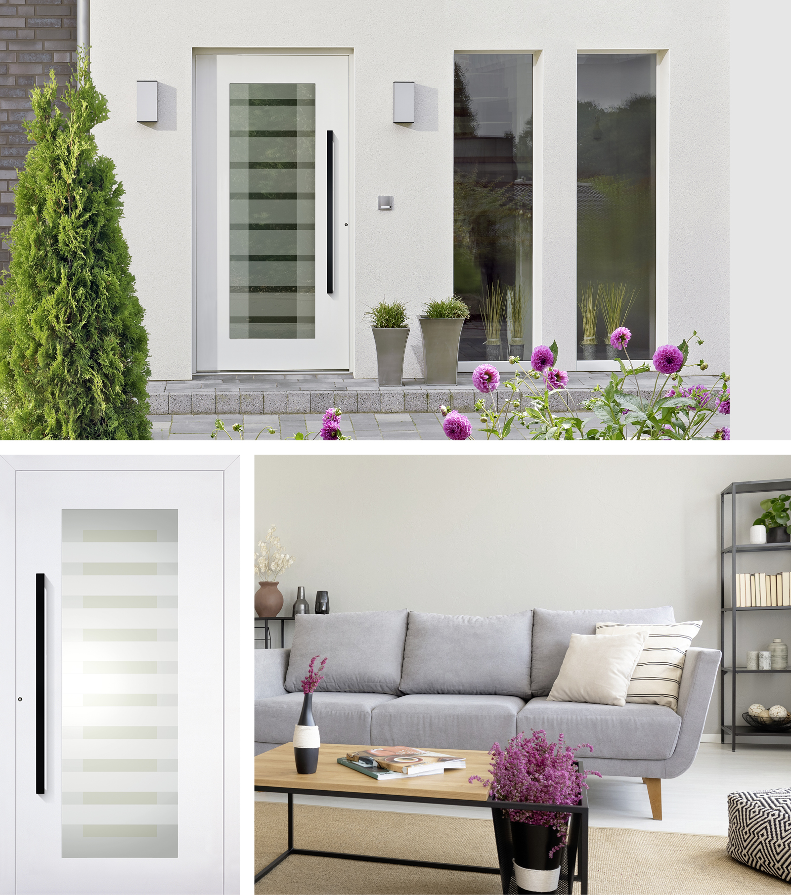 Se preferite un look moderno, scegliete un colore di base senza tempo che si abbini alle finestre o all'ambiente circostante. Ogni singolo modello di porta può essere progettato individualmente in un'ampia gamma di combinazioni e conferisce alla vostra casa il suo fascino.