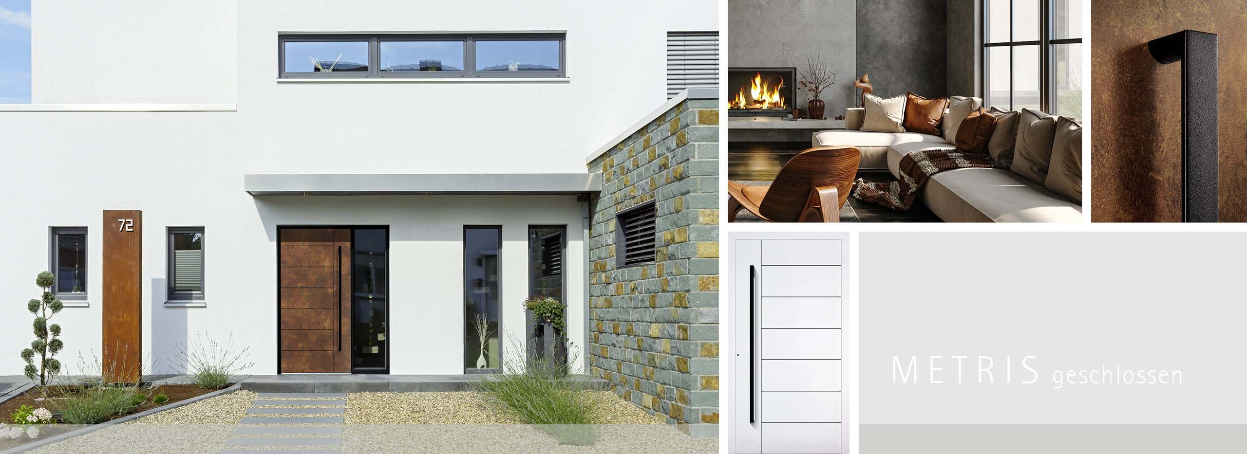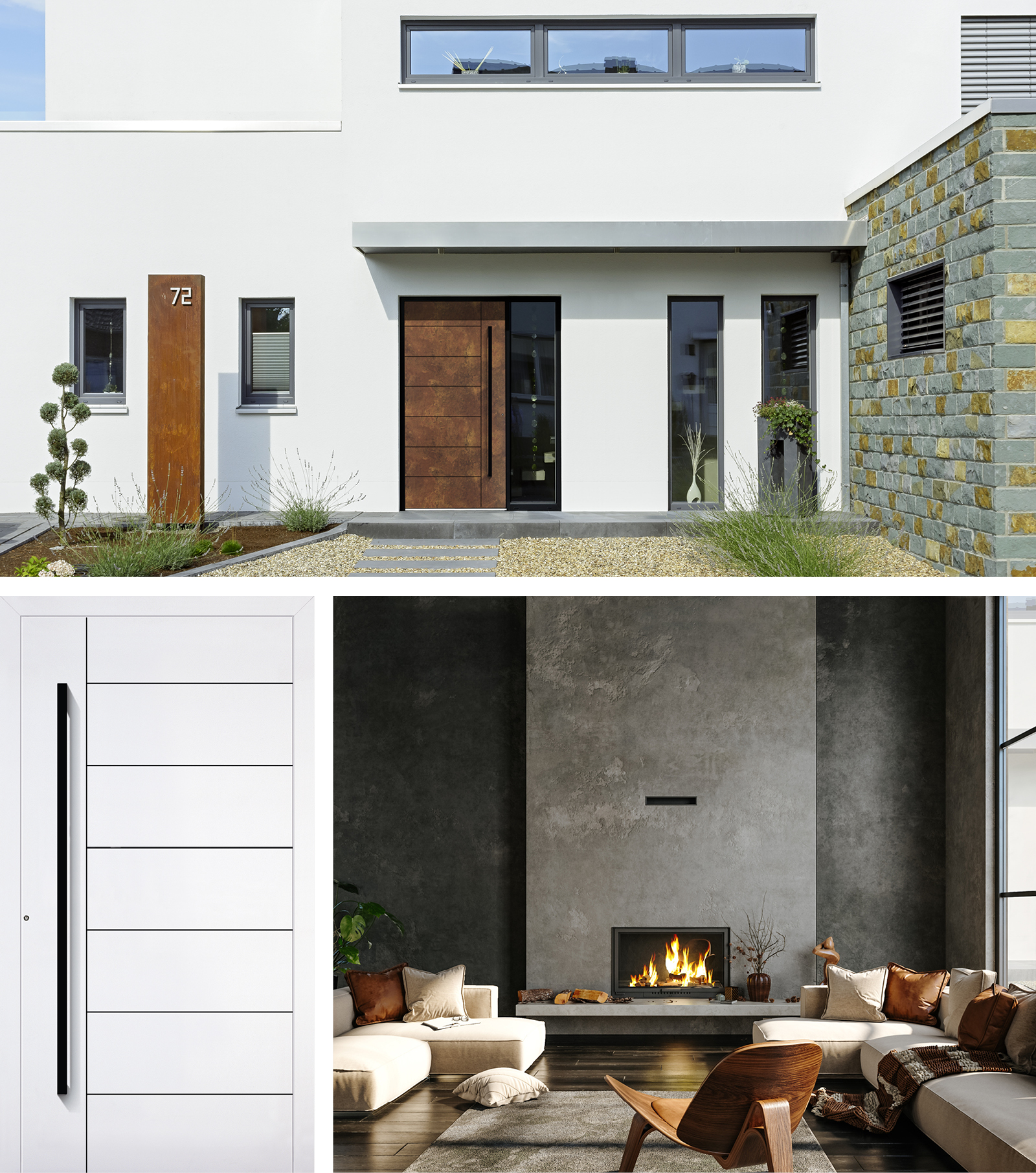 Schwarz als Gestaltungselement ist in der Möbelbranche schon länger im Trend. Aber auch Haustüren gibt die Farbe Schwarz einen neu entdeckten, ganz besonderen Eindruck. Sicher, eine weiße Tür passt zu fast allen Häusern, doch dunkle Töne verleihen mehr Tiefe und neue Gestaltungsmöglichkeiten. Wer es Ton in Ton mag, kombiniert zu den schwarzen Griffen und Applikationen auch den Briefkasten, die Hausnummer oder die Lampen in Schwarz. Und sogar die komplette Tür ist in Schwarz ein echter Hingucker. Haben Sie es gern modern, wählen Sie eine zeitlose Grundfarbe oder eine der trendigen  Designfolien in Rost- oder Betonoptik. Jedes einzelne Türmodell lässt sich so in reichlichen Kombinationsmöglichkeiten individuell gestalten und gibt Ihrem Haus seinen eigenen Charme.